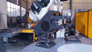 關(guān)節(jié)機(jī)器人抓取能力為20kg,臂展半徑為1811mm,重復(fù)定位精度為±0.08mm;德國雄克雙工位氣爪不僅可在12秒時(shí)間內(nèi)快速完成機(jī)床的上下料換料工作,而且送料精度準(zhǔn)確,使用壽命長,可保證400萬次的換料使用頻次;八工位循環(huán)料倉可兼容零件直徑為Φ50mm~Φ220mm,每個(gè)工位可承重100kg,碼料高度為400mm,料倉一次儲(chǔ)料可滿足自動(dòng)線8小時(shí)的加工需求。