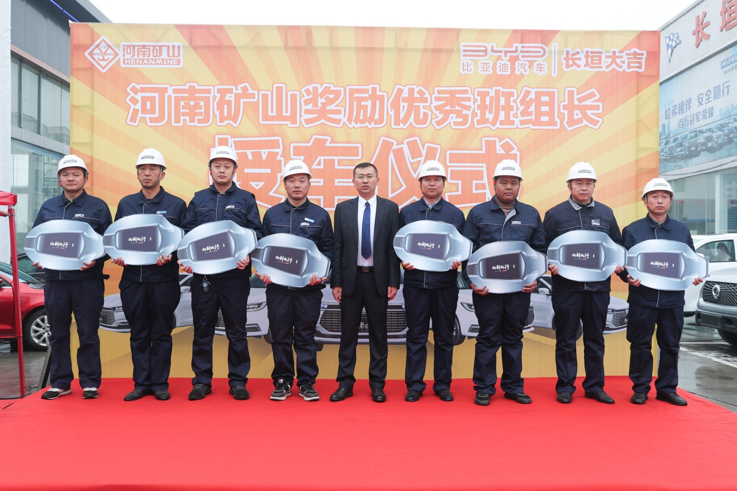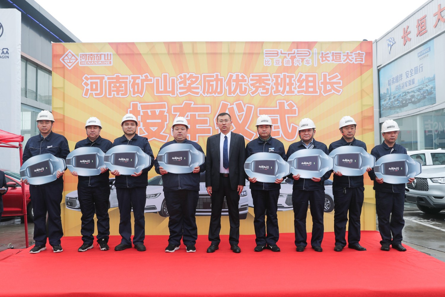 3月11日,河南礦山獎(jiǎng)勵(lì)**班組長(zhǎng)授車儀式在長(zhǎng)垣大地亞飛汽車城內(nèi)隆重舉行。公司24名一線**員工得以重獎(jiǎng),每人獲得一輛純電動(dòng)比亞迪全新秦EV。據(jù)悉,該批車市場(chǎng)總價(jià)值420余萬(wàn)元。